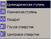 Кнопка простые ступени. При нажатии на неё раскрывается вложенное меню (рис. 3.11). Оно содержит список ступеней внутреннего контура, которые можно создать при проектировании детали.