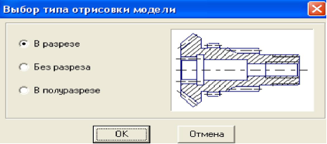 2. В открывшемся окне Выбор типа отрисовки модели (рис. 3.15) указать, с каким типом отрисовки следует работать. Выбранный тип отрисовки вала впоследствии можно изменить путём вызова команды отредактировать контекстно-зависимого меню модели.