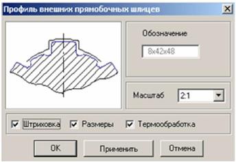 Опция масштаб (рис. 5.2) позволяет выбрать масштаб изображения профиля шлицы на чертеже из стандартного ряда масштабов.