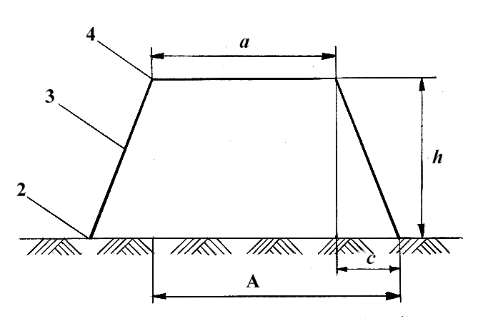 Подошва насыпи; 2 – основание откоса; 3 – откос; 4 – бровка откоса