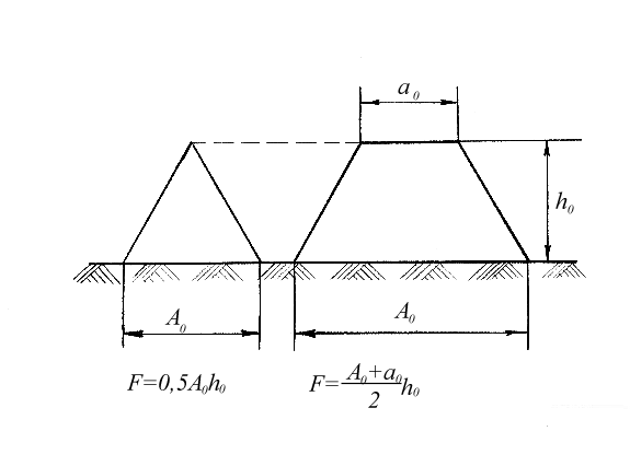 Поперечное сечение призмы грунта представляет собой (рис. 4.17) либо равнобедренный треугольник, площадь которого равна:
