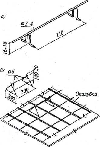 б — «коэелки», для обеспечении защитного слоя верхней арматурной сетки