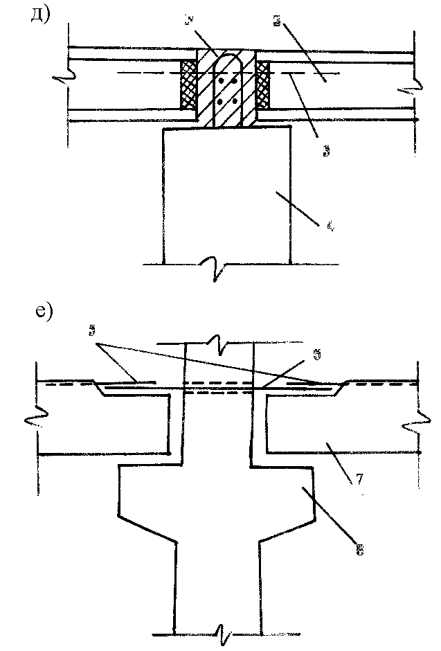 д – пустотных плит перекрытия с балкой, е – ригелей с двухконсольной колонной;
