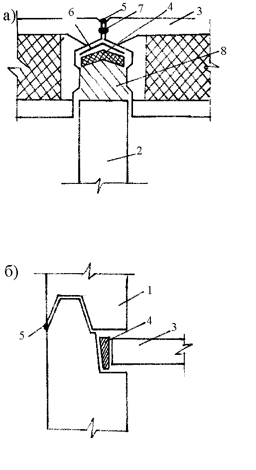 Рис. 8.4. Вертикальный (а) и горизонтальный (б) стыки крупнопанельных зданий: