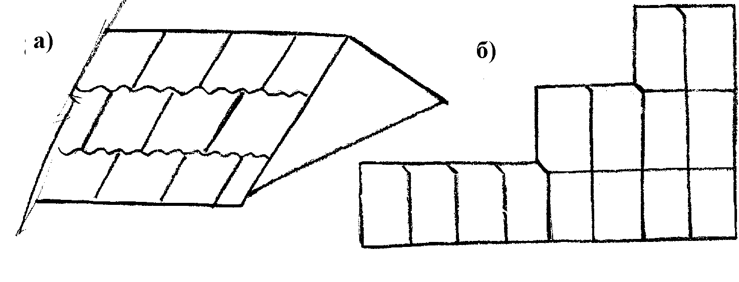 Существует два способа укладки асбестоцементных листов: со смещением на одну волну по отношению к листам предыдущего ряда и без смещения (рис. 10.3).