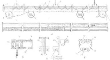 И все же полной гарантии безаварийной работы от дороги с деревянными направляющими добиться трудно. Несмотря на уголковые соединительные скобы, четырехроликовые ведущие каретки и другие меры, не исключена деформация дороги вследствие коробления древесины и жестких условий эксплуатации, особенно при перевозках. Даже небольшие отклонения от заданных параметров могут привести к нарушениям нормальной работы раздержки.