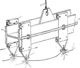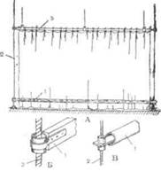 Рис. 49. Дорога-раздержка на основе швеллера: 1 — швеллер; 2 — каретка; 3 — трос подвески; 4 — тяговый канат; 5 —занавес