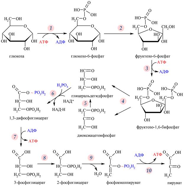 Аэробным гликолизом называют процесс окисления глюкозы до пировиноградной кислоты, протекающий в присутствии кислорода. Все ферменты, катализирующие реакции этого процесса, локализованы в цитозоле клетки.