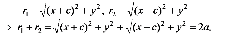 По определению эллипса: r 1 + r 2 = 2 a, а > c. Из прямоугольных треугольников, по теореме Пифагора, имеем: