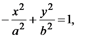 Следует отметить, что если уравнение гиперболы имеет вид (14), т. е. ее фокусы находятся на оси Оу, то изменятся формулы для вычисления фокальных радиусов, эксцентриситета, директрис. Так