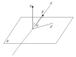 sinφ=∣cosγ∣=∣ ∣ Ap 1+ Bp 2+ Cp 3∣ ∣ √ A 2+ B 2+ C 2√ p 21+ p 22+ p 23