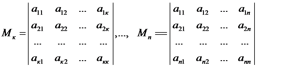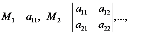 то есть это миноры порядка 1, 2, …, n матрицы А, расположенные в левом верхнем углу, последний из них совпадает с определителем матрицы А.