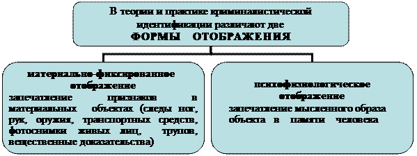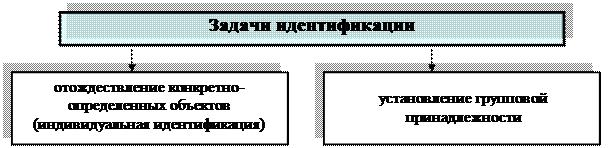 Криминалистическая идентификация – это система принципов, научно-обоснованных методов и средств отождествления материальных объектов по отображениям, возникающим при взаимодействии этих объектов с обстановкой и другими материальными объектами во время подготовки, совершения или сокрытия преступления, с целью установления связи отождествляемого объекта с расследуемым событием.