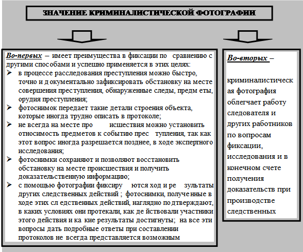 Криминалистическая фотография – это отрасль криминалистической техники, представляющая собой систему научных положений и разработанных на ее основе фотографических методов, приемов и средств, используемых для запечатления и исследования объектов в целях раскрытия и расследования преступлений.
