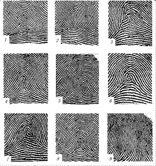 9 - аномальный узор (классифицируемый, как и дуговые, цифрой 1)