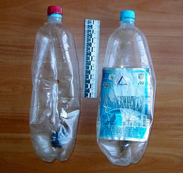 Общий вид двух пластиковых бутылок емкостью 1,5 л, представленных
