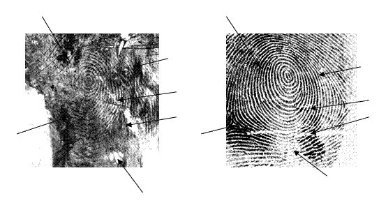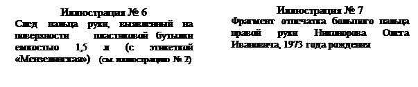 *Примечание: на иллюстрациях №№ 6, 7 красителем красного цвета одноименными цифрами отмечены совпадающие признаки папиллярного узора.