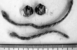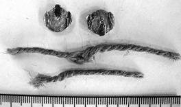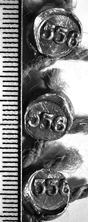 Иллюстрация № 1. Общий вид пломб с отрезками бечевы со стороны цифровых обозначений, изъятых с места происшествия