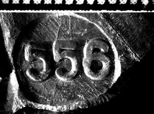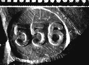 | Иллюстрация № 8. Экспериментальный след давлении (обжима), полученный пломбировочными тисками, представленными на исследование, со стороны цифровых обозначений | |