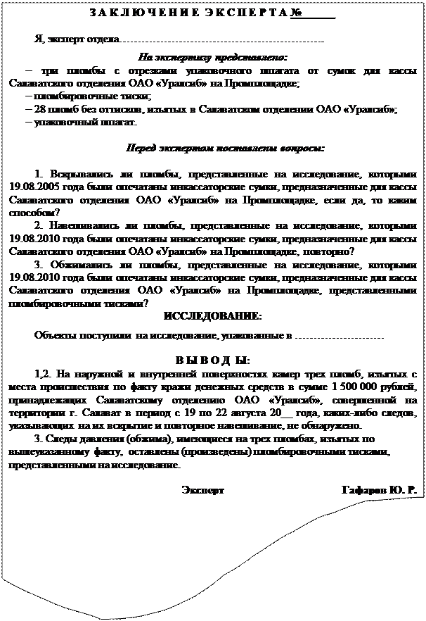 ФРАГМЕНТЫ ЗАКЛЮЧЕНИЯ ЭКСПЕРТА: