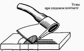 | | | УГЛЫ В ТРАСОЛОГИИ 1 – Встречный угол – угол между линией контактирования образующего объекта и линией направления движения. 2 – Фронтальный угол – угол, образованный плоскостью объекта и плоскостью вопринимающего объекта. 3 – Рабочий угол (угол заточки) – угол между пересекающимися плоскостями, образующими контактную линию. | |