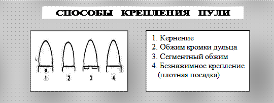§ признаки способа крепления пули;