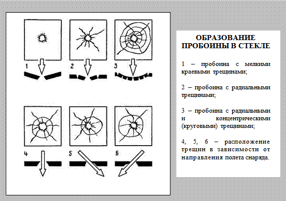 § характер следов, возникших при преодолении преграды, наличие сходных повреждений (число таких дробин);