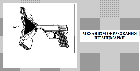 Штанцмарка - отпечаток контура дульного среза оружия на коже вокруг входного отверстия раны при выстреле в упор. Данный отпечаток образуется, когда в момент производства выстрела дульный срез оружия плотно прижат к поверхности тела. В момент выстрела, после того, как ранящий снаряд прокладывает раневой канал через кожу, пороховые газы, толкающие данный снаряд, оказывая значительное давление на стенки раневого канала, проникают в слой подкожно-жировой клетчатки, разрывая силой своего давления рыхлые элементы данного слоя. В результате вокруг дульного среза оружия слой кожи отслаивается от подлежащих тканей. Продолжая оказывать давление внутри раневого канала и под отслоенным кожным лоскутом, пороховые газы придавливают отслоенный участок кожи к дульному срезу оружия. Как следствие - образуется отпечаток дульного среза.