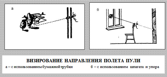 § определить вероятное место нахождения стрелявшего (по следам выстрела, результатам визирования, следам ног);