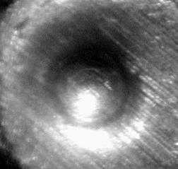 Иллюстрация № 5. Цифровая съемка с использованием сравнительного микроскопа МСК-1 следа бойка на капсюле гильзы патрона № 1 (А) и капсюле гильзы патрона № 2 (Б) цифровой фотокамерой CASIO QV 2800UX
