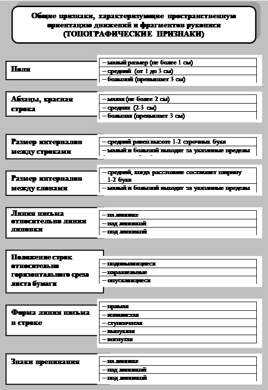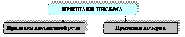 v Идентификационные признаки письма – признаки письменной речи и почерка, используемые для установления исполнителя или автора рукописного текста.