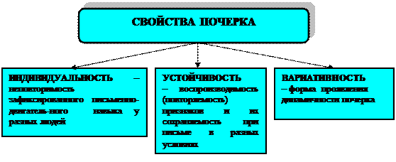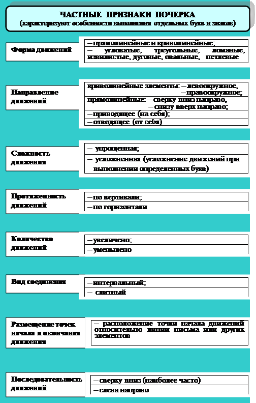 v Почерк – это зафиксированная в рукописи система привычных движений, в основе формирования которой лежит письменно-двигательный навык – индивидуальная и динамически устойчивая программа графической техники письма, отраженная на бумаге.