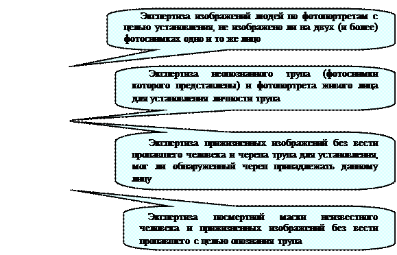 v В ходе экспертизы чаще всего решаются задачи установления – одно и то же лицо изображено на представленных фотоснимках или иных объективных отображениях внешнего облика человека, а так же установления пола, возраста, расово-этнической принадлежности представленного на портрете человека.