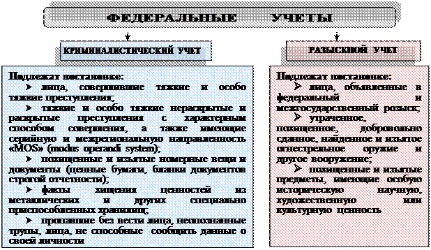 Криминалистические и разыскные учеты предназначены для оперативного информационного обслуживания раскрытия и расследования преступлений, а также предупреждения особо опасных, в том числе серийных межрегиональных и региональных преступлений.