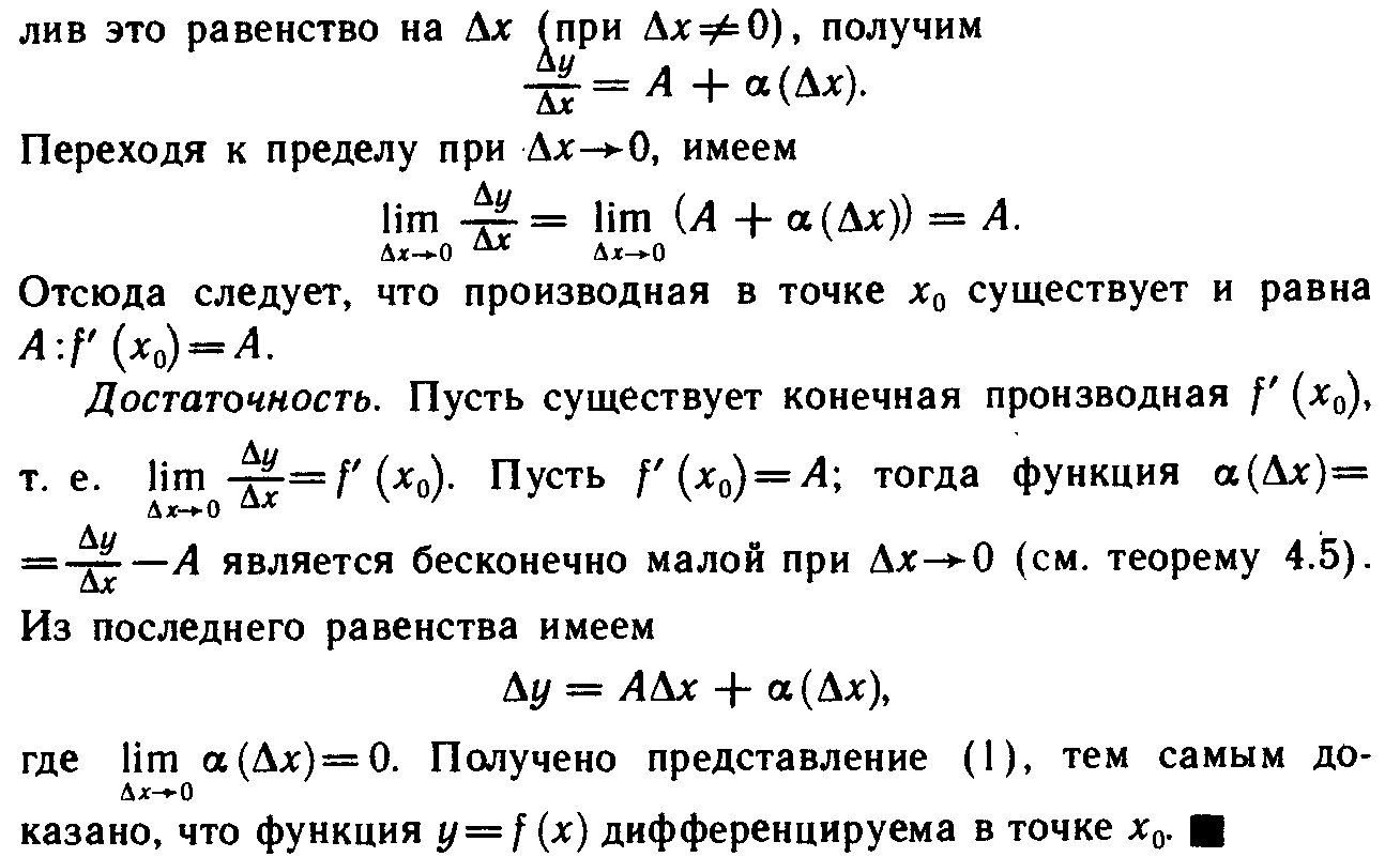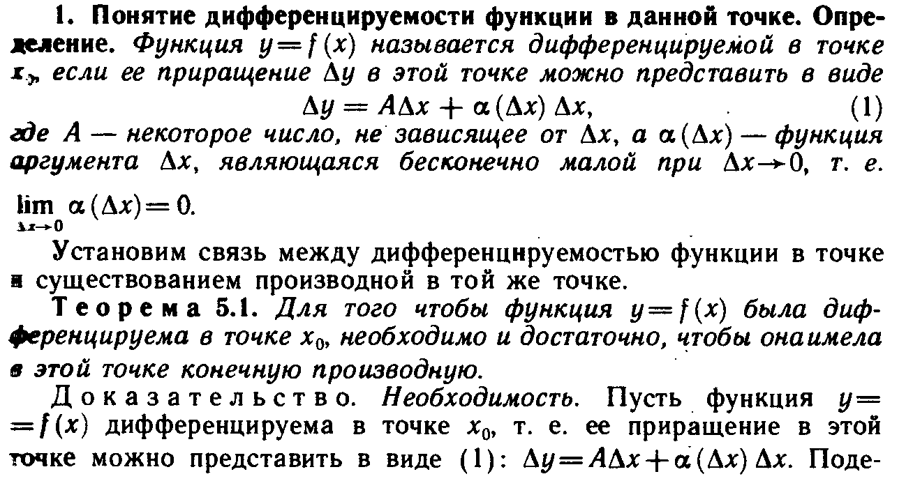 26.Понятие дифференцируемости функции. Взаимосвязь между наличием производной и дифференцируемостью. Непрерывность дифференцируемой функции.