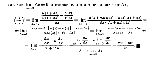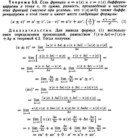 Производная суммы, произведения, частного двух функций
