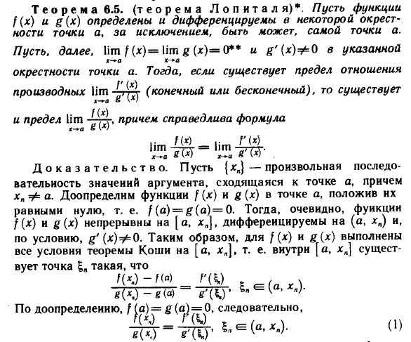 Правило Лопиталя раскрытия неопределённостей