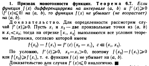 Признак монотонности функции