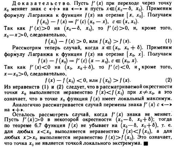 Достаточное условие локального экстремума