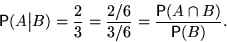 | Мы хотим вычислить отношение числа исходов, благоприятствующих внутри (то есть благоприятствующих одновременно и ), к числу исходов, благоприятствующих .