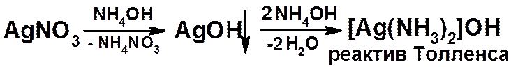 Реактив Толленса – аммиачный раствор нитрата серебра: