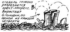 Различные фрукты и овощи (томаты, тыква, дыня), прикрытые мульчей в период уборки урожая, бродят и гниют, выбрасывая сеянцы для новых посадок. Верхушки моркови, сохраняемые в темном и прохладном месте, вновь дают проростки, и их можно высаживать в мягкую почву (рис. 5.11A). Капусту низко срезают, кочерыжку расщепляют крестообразно ножом. В результате вырастают меньшие по размеру головки капусты, которые, в свою очередь, снимают или разделяют и пересаживают (рис. 5.11B).