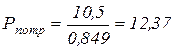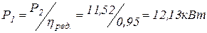 где Р – мощность на барабане [кВт],