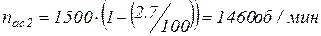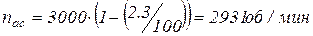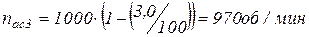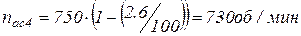 nac – асинхронная частота вращения электродвигателя (реальная).