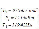 n1 = 970 об/мин - число оборотов на быстроходном валу редуктора;