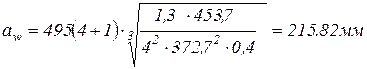 Найдем предварительное значение межосевого расстояния аw, мм: