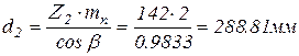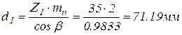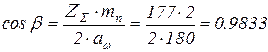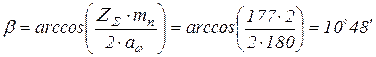 Угол наклона зубьев зубчатых колес принимают в пределах от 8º до 16º (для шевронных колес до 25º). Предварительно зададимся углом β = 10º (cos 10º ~ 0,9848).