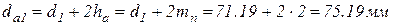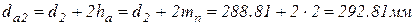 | Диаметр окружности выступов, мм | da | | 75.19 | 292.81 | |