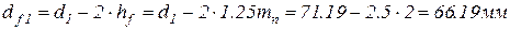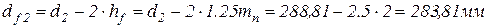 | Диаметр окружности впадин, мм | df | | 66.19 | 283.81 | |