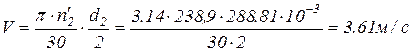 | Окружная скорость, м/с | V | | 3.61 | ||